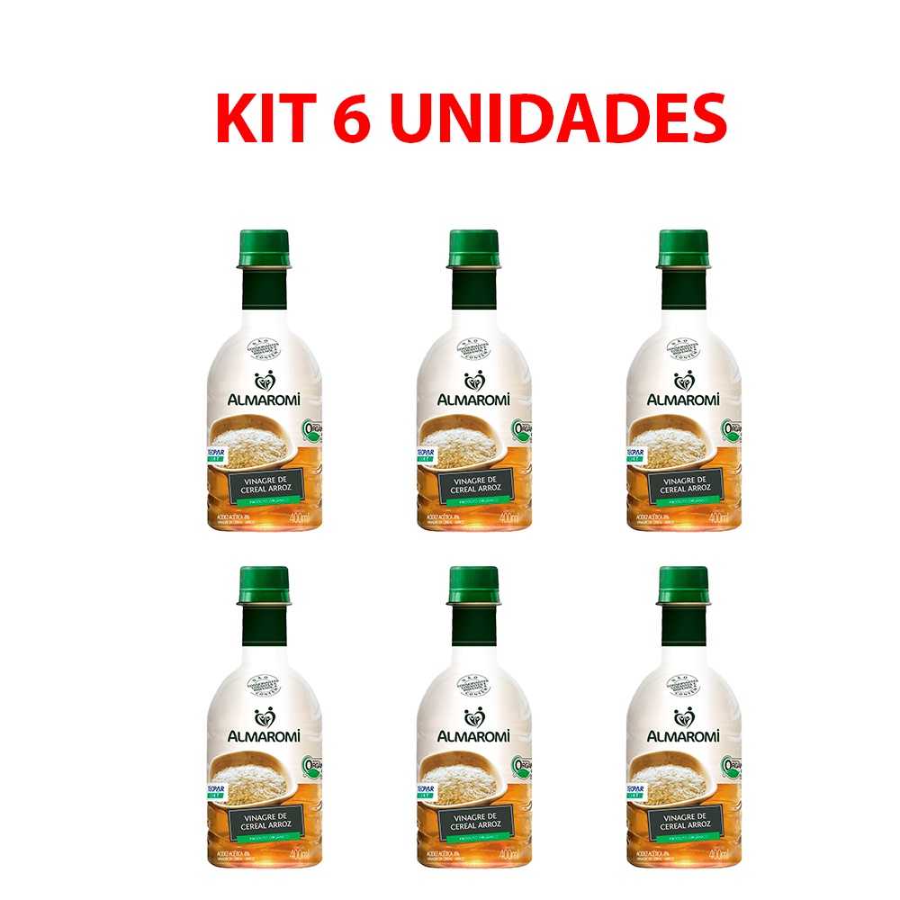 Kit 6 Vinagre de Arroz Orgânico Almaromi 400ml Zero Álcool 100% Natural