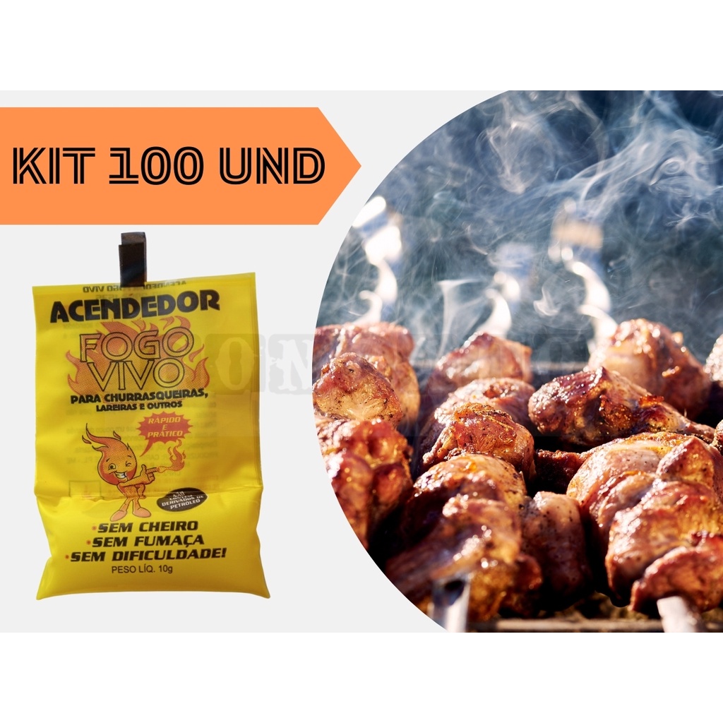 Acendedor de Churrasqueira kit 100 und, Acende Fácil e Seguro Lareira, Fogão Lenha e Carvão