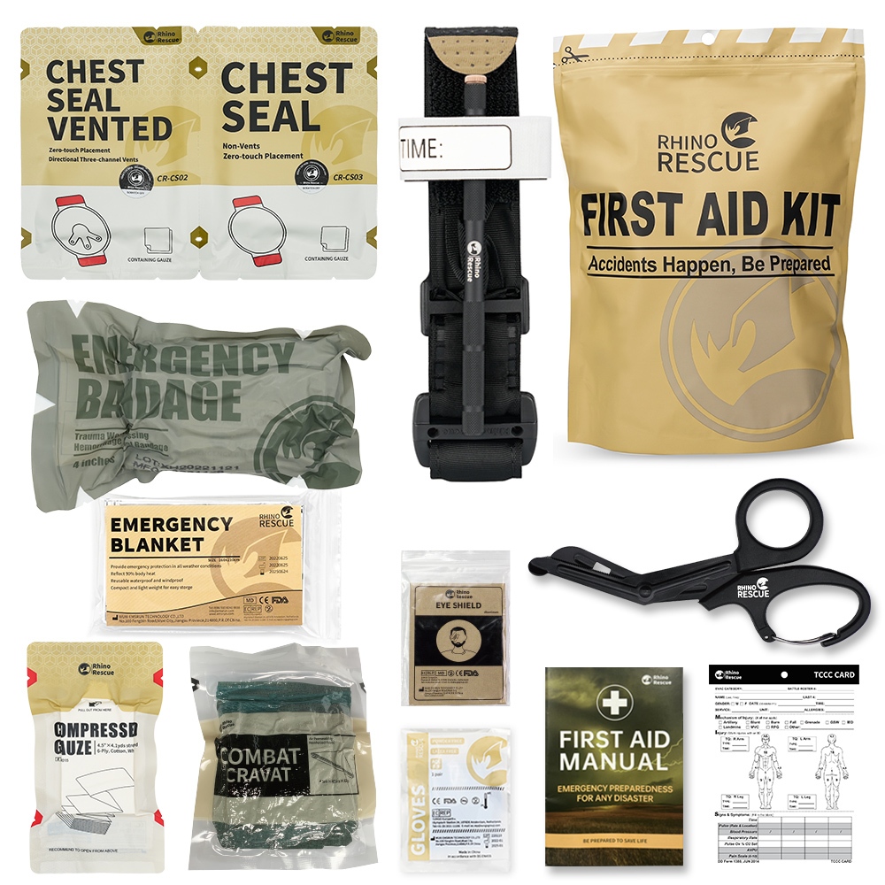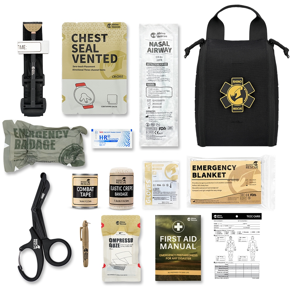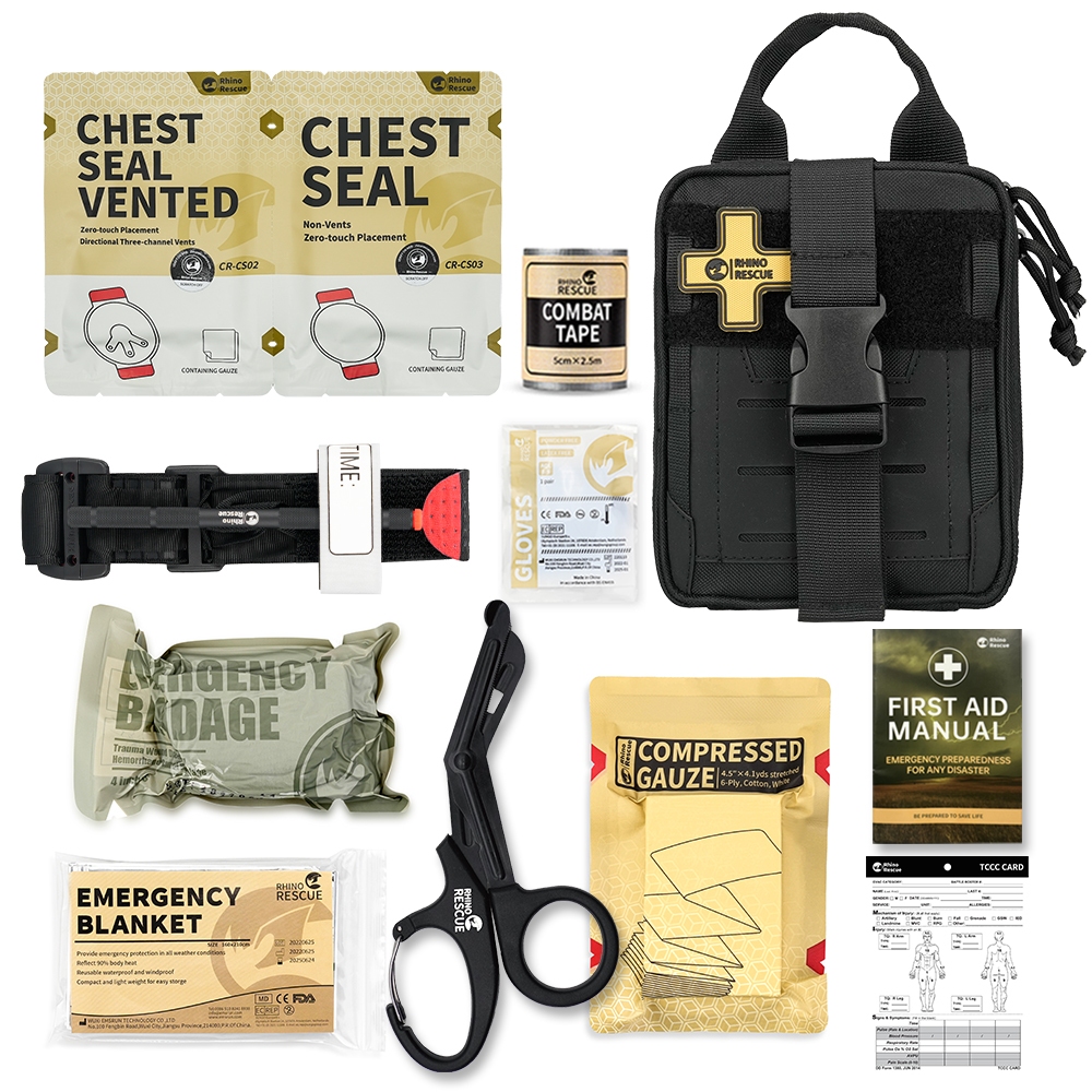 RHINO RESCUE IFAK APH Kit Trauma , 002M Resposta Rápida De Emergência , Tourniquet Metal , Bandagem Selo De Tórax , Tático De Primeiros Socorros Para Controle De Sangramento Grave Preto
