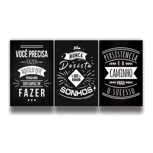 Kit 3 Placas Quadros Decorativos Mosaico Motivacional Nunca Desista Dos Seus Sonhos Para Decoração Sala Escritório Quarto Cozinha