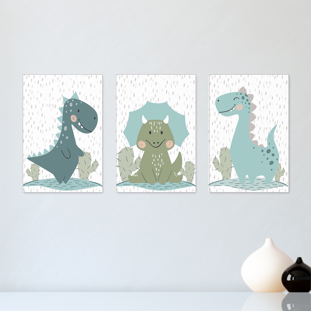 Kit 3 Quadros Decorativos Placas Dinossauros Dino Infantil Bebe Quarto Menino Menina - 0134ktpl