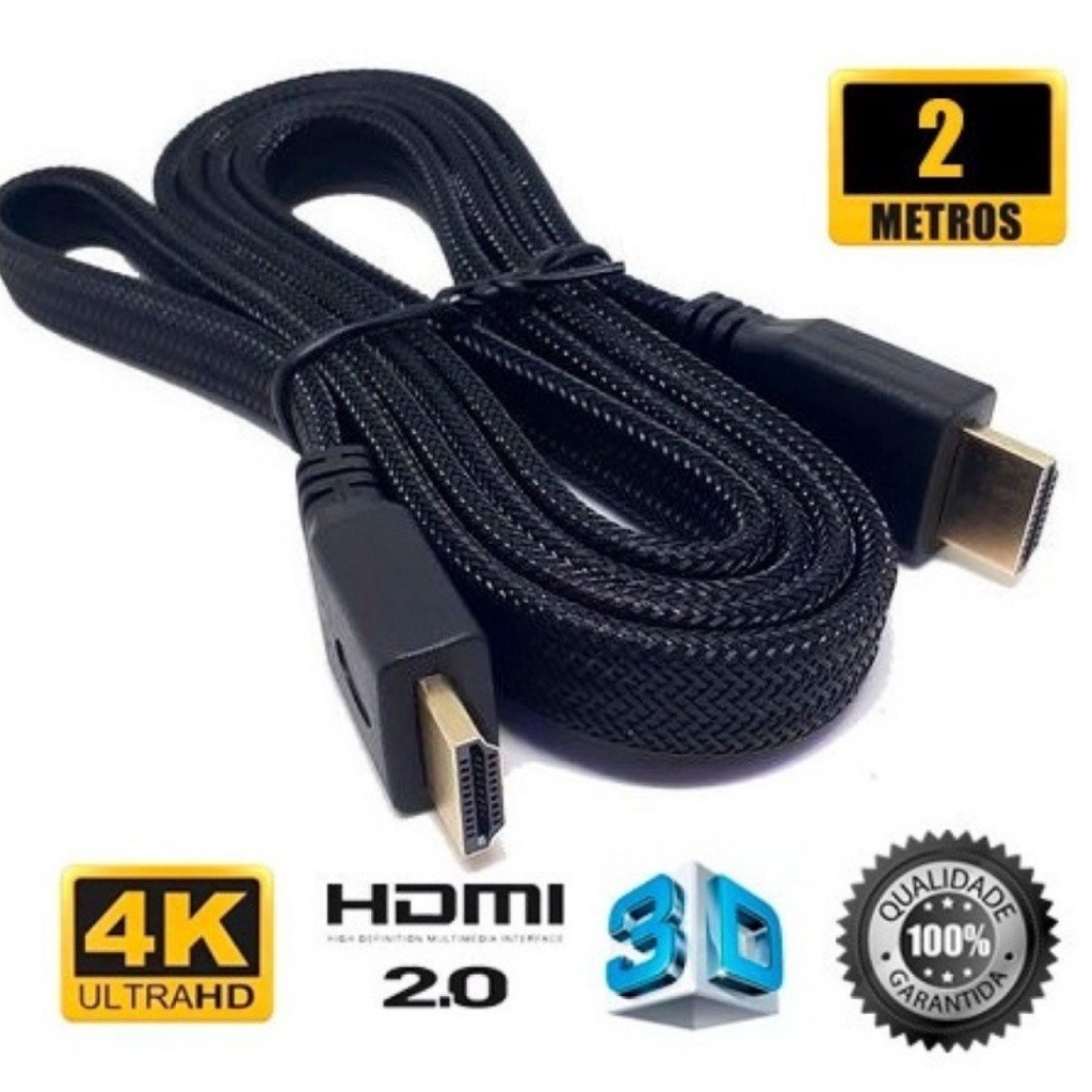 Cabo Hdmi HdTV Full Hd 4K 3D Alta definição Resolução Versão 2.0 2 Metros