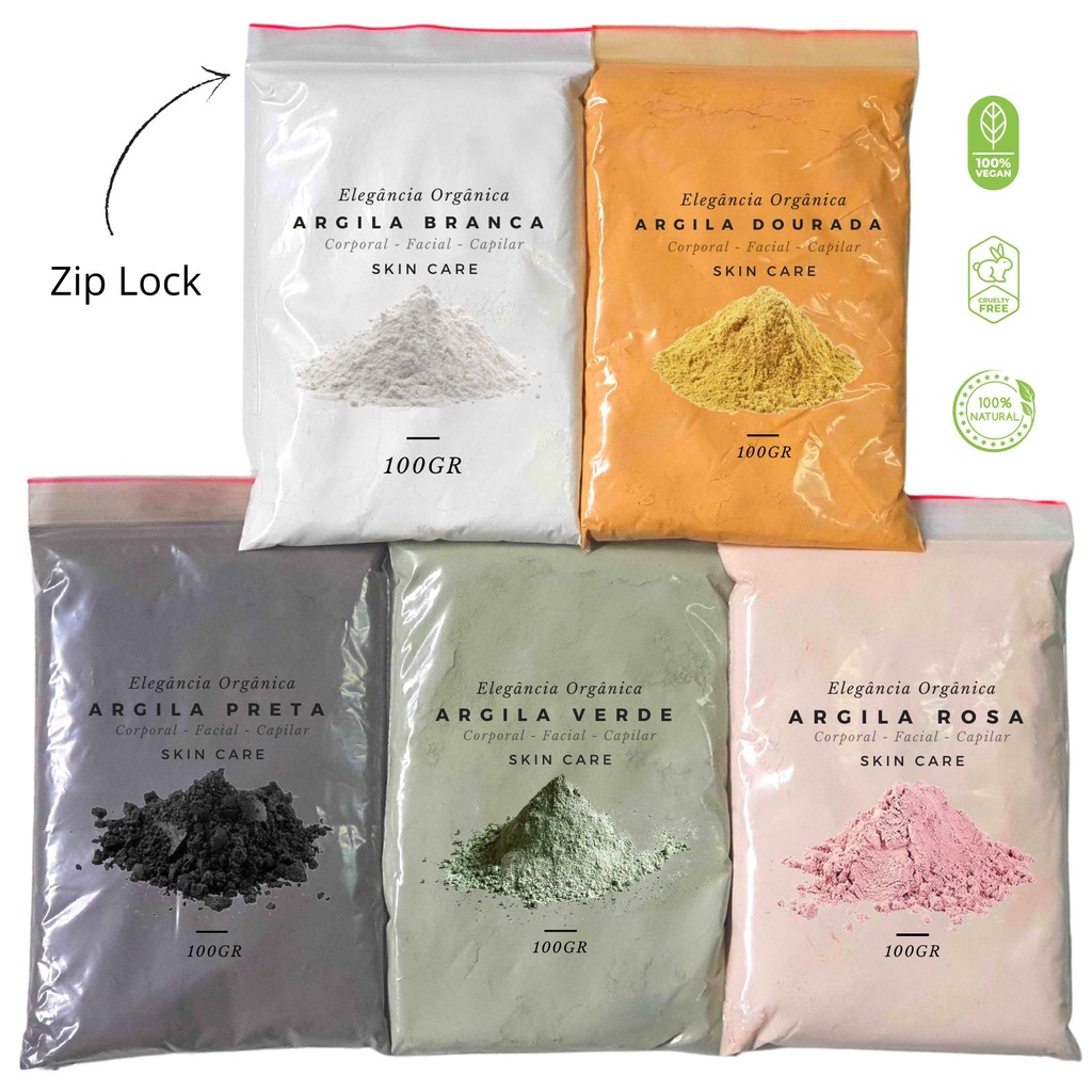 Skin Care 500GR Argila 5 Cores - Verde - Rosa - Preta - Branca - Dourada (100gr Cada)