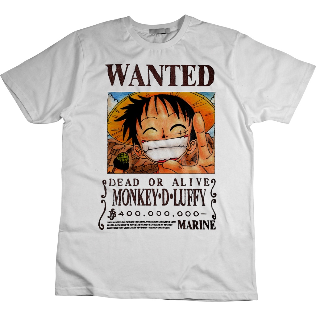 Camiseta do Anime ONE PIECE - Monkey D Luffy Wanted - Cor Branca