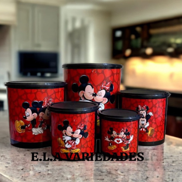 Kit 5 Peças Mantimento Stitch Jogo Plástico/ Porta Mantimentos e Organizadores de cozinha com Adesivo