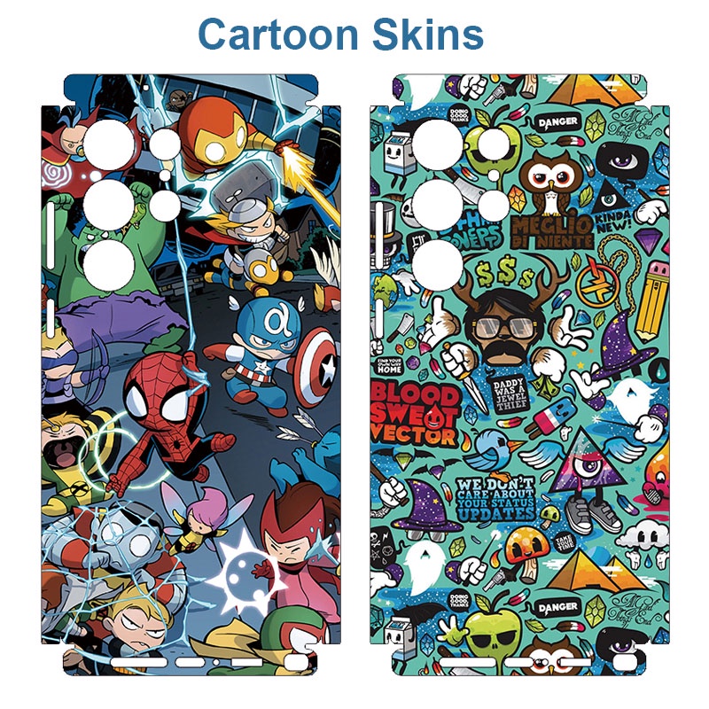 Pele Decalque Dos Desenhos Animados Para Samsung Galaxy S23 S22 S24 Ultra Plus A54 A55 5G Protetor De Tela Traseira 3M Envoltório Filme Marvel Anti-Risco Adesivo Durável