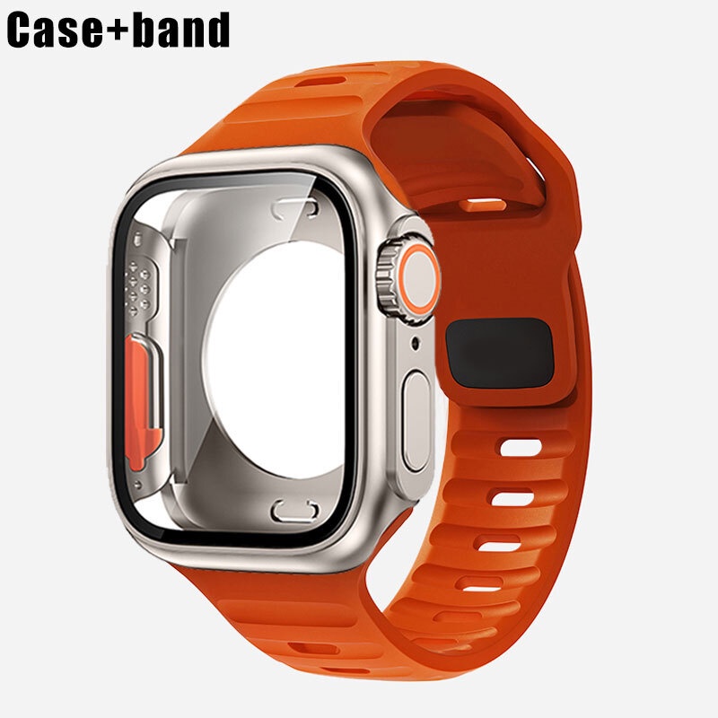 Alça De Silicone + Estojo Para Pulseira De Relógio Apple 44mm 45mm 41mm 40mm Mudança Da Tampa De Vidro Temperado Ultra iWatch Série 8 7 SE 6 5 3