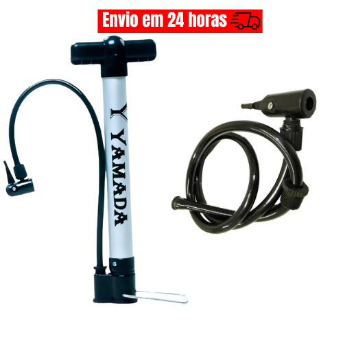 Bomba De Ar Para Bicicleta Yamada Alumínio 30cm Para Encher Pneu Bike / Mangueira Bico Extensora Com Conexão