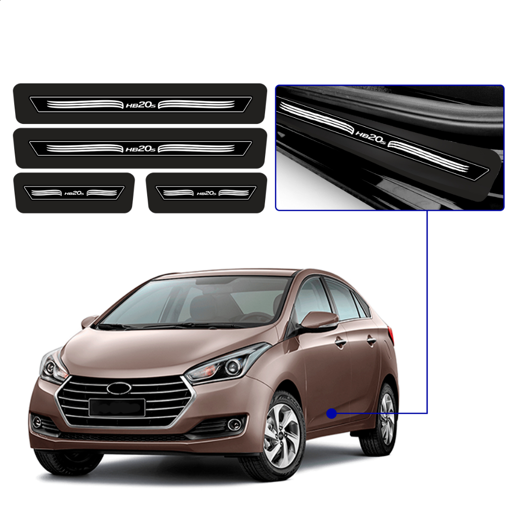 Kit 8 Peças Adesivo Soleira De Porta Hb20s Sedan 2013 À 2020