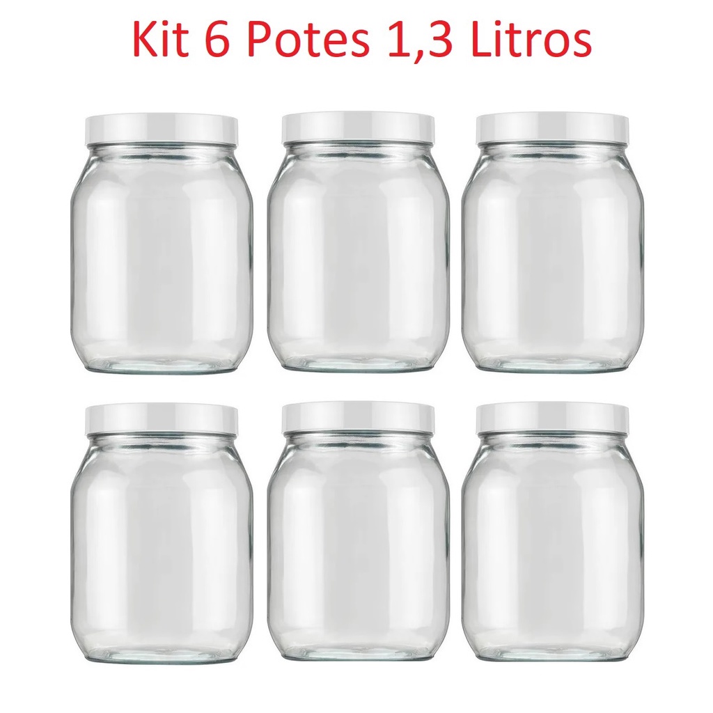 Kit 6 Pote 1,3 Litros Recipiente Vidro Liso Invicta Branco
