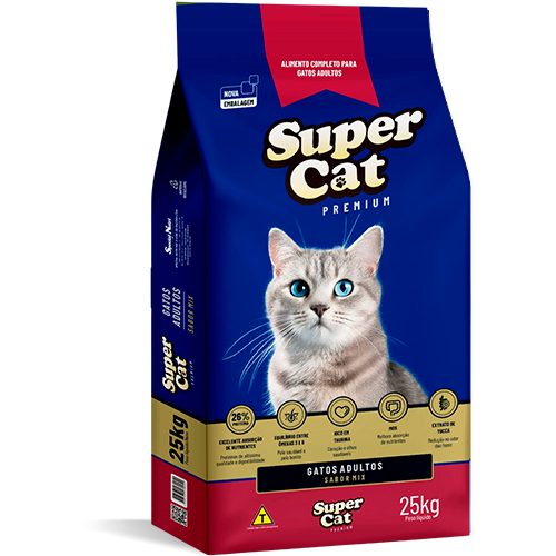 RAÇÃO Kit 3 Super Cat – 3×1 kg | Sabor Carne e Peixe Contém Taurina e Prebióticos