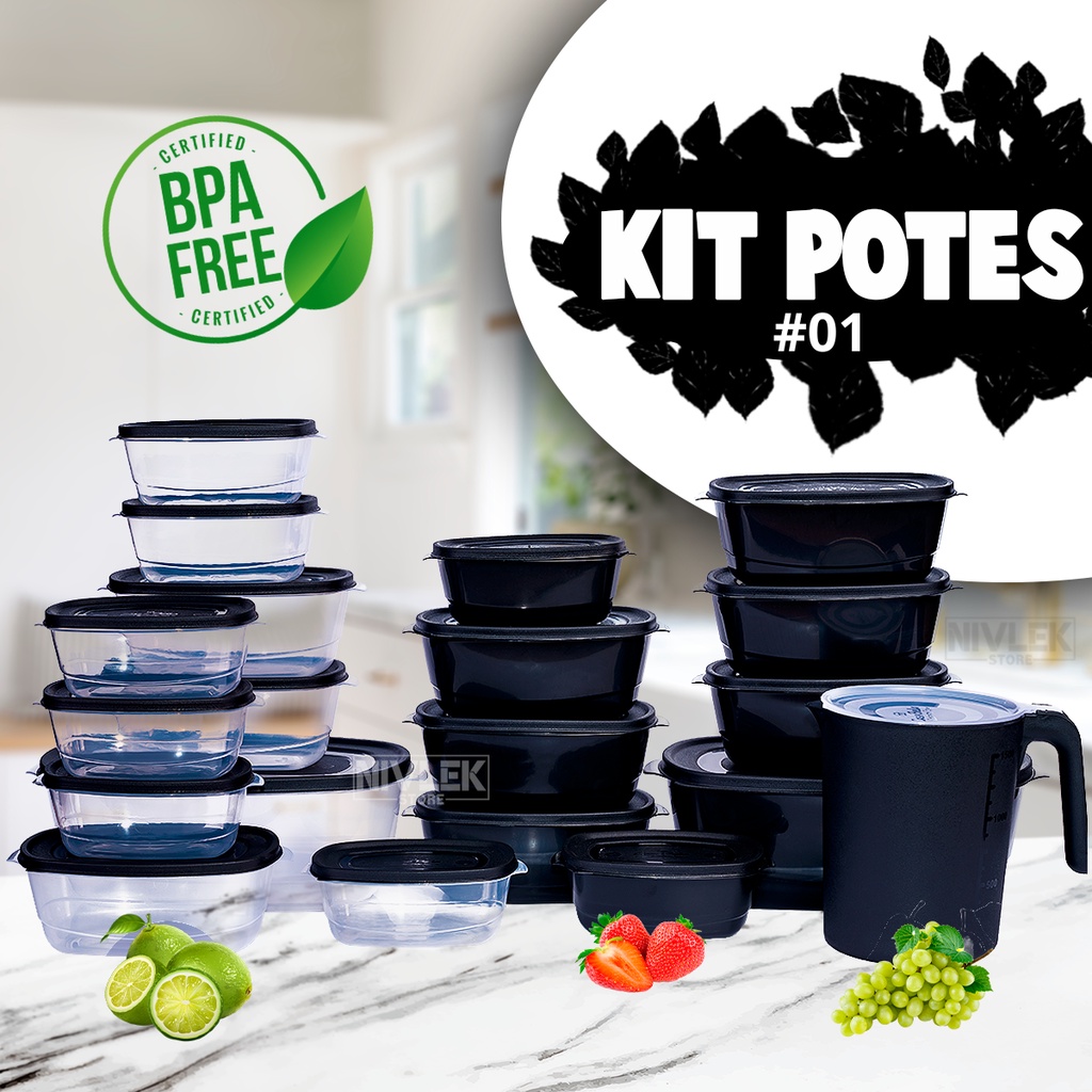 Kit 21 peças de plástico Herméticos potes Retangular de Plástico mais Jarra 1.500 ML