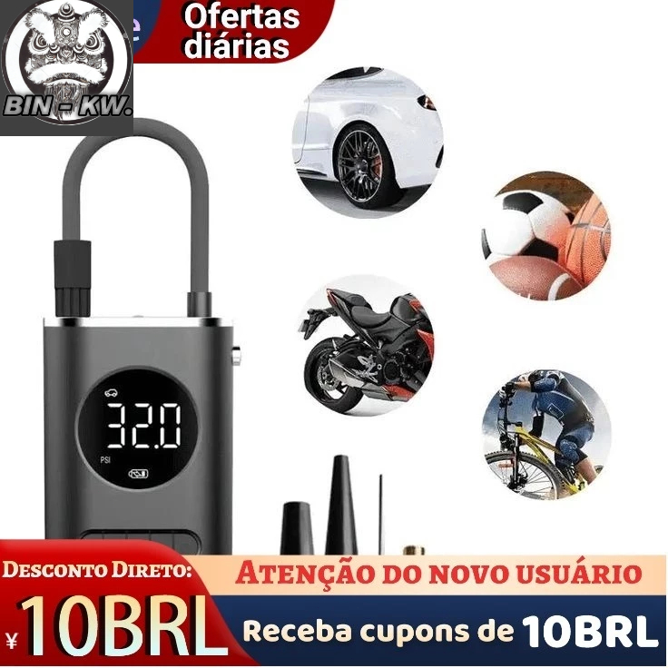 Mini Compressor de Ar Digital Portátil - USB Recarregável - Calibrador de Pneu Profiss
