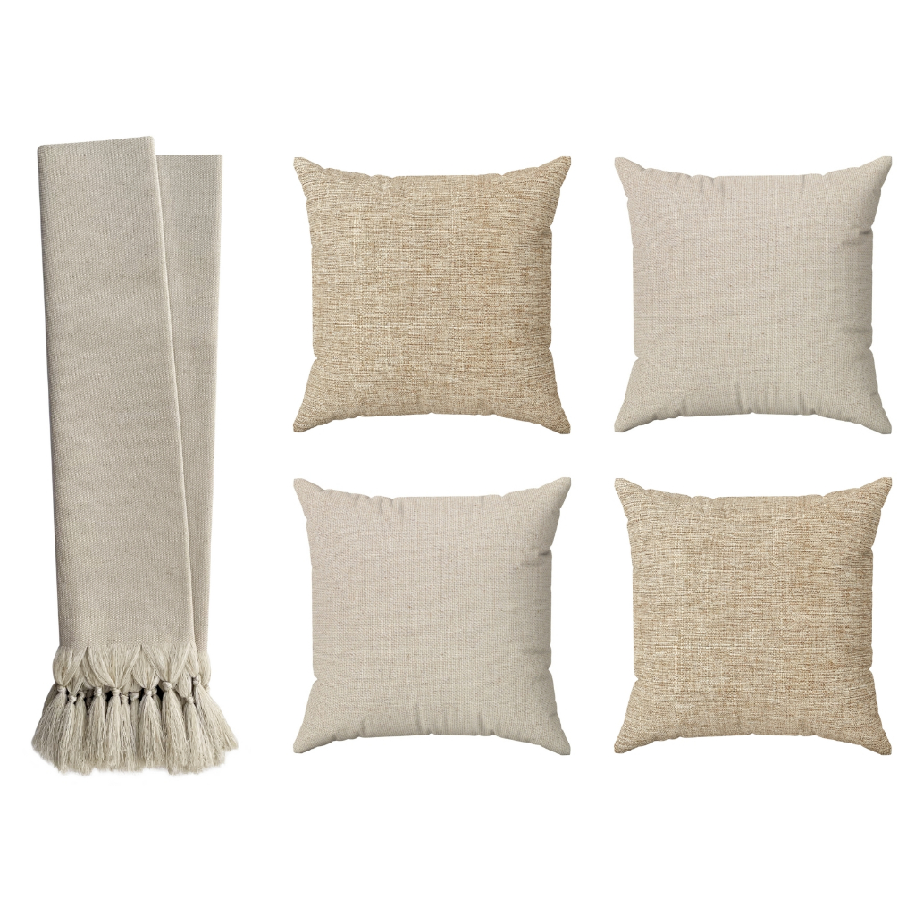 Kit 4 Capas De Almofadas Decorativas Premium 45x45 C/ Zíper + Manta Sofá Bege Cru