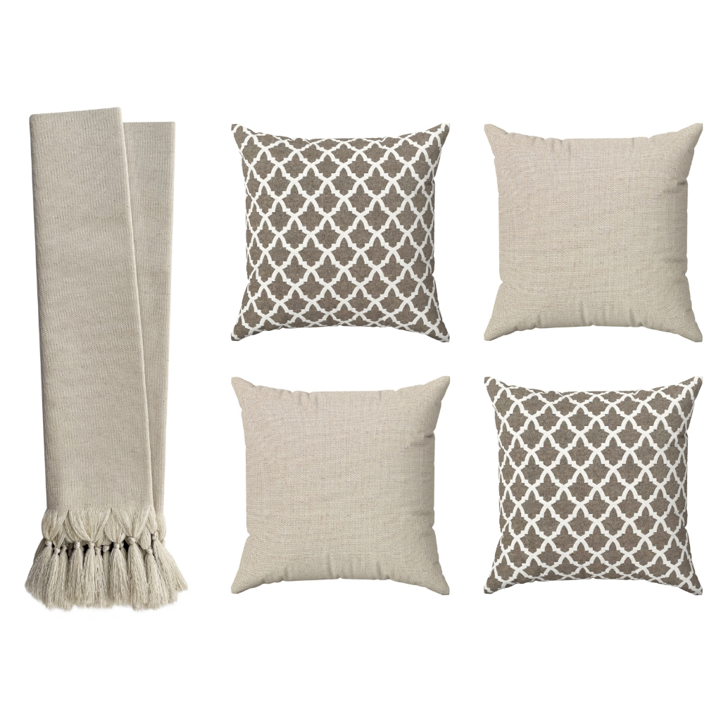 Kit Manta Para Sofá Com 4 Capas De Almofadas Bege Marrom Indianas
