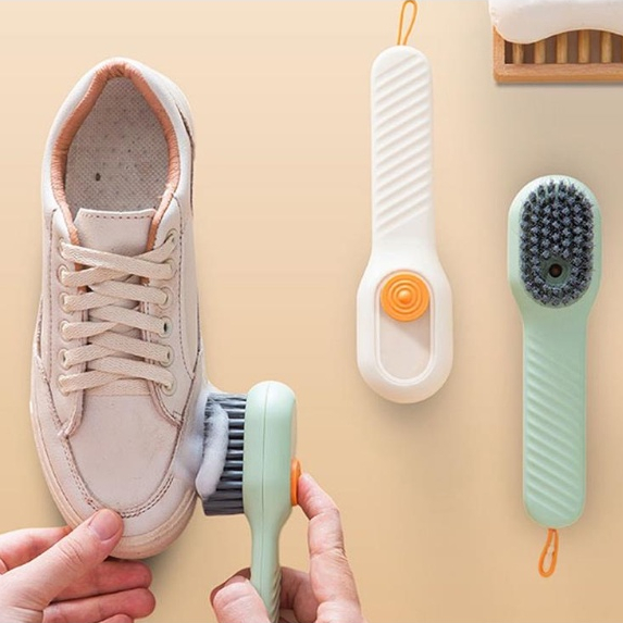 Escova de Limpeza Portátil Multifuncional 2 em 1 com Dispense Cerdas Macias para Roupas Sapato Tênis
