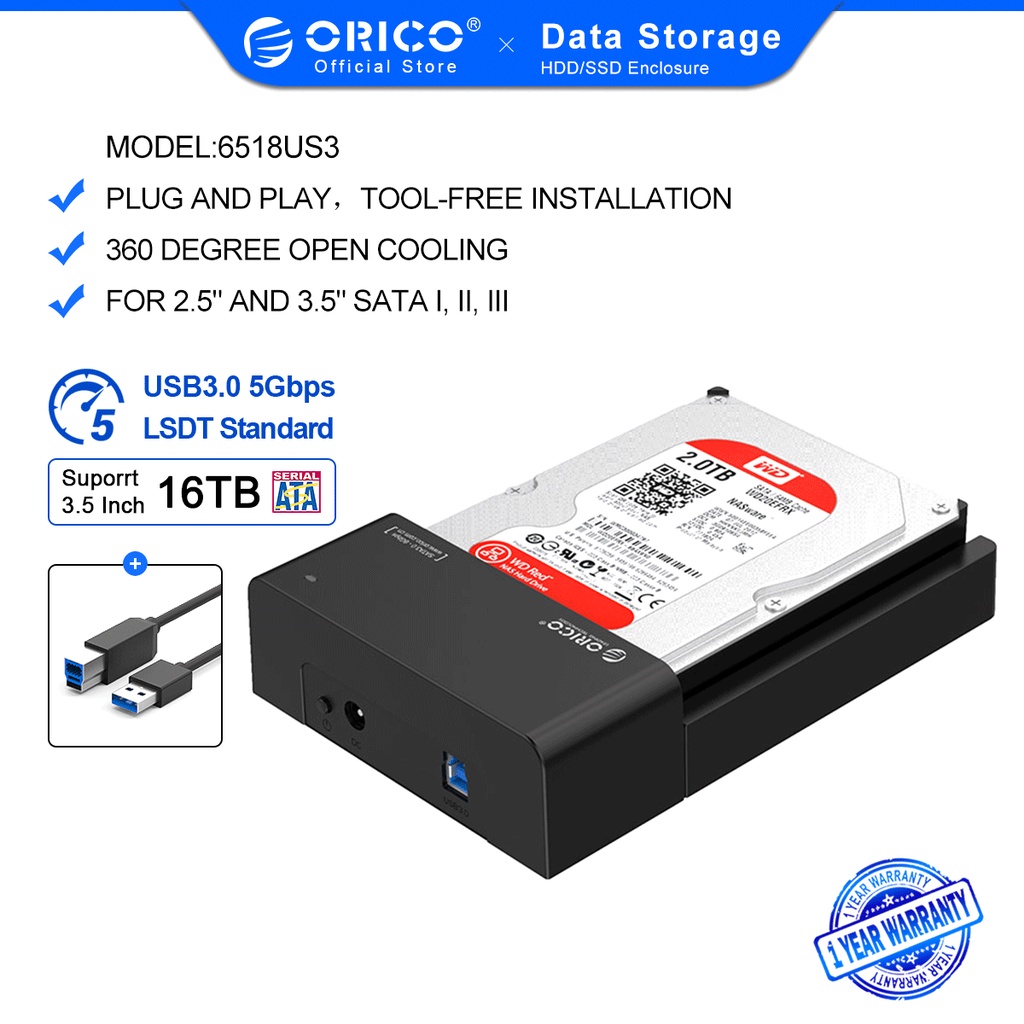 ORICO 2.5 3.5 Polegada Caso HDD SATA Para USB 3.0/3.1 Gen1/Gen2 Tipo-C Adaptador SSD De Alta Velocidade Caixa De Disko Rígido Externo Recinto (6518)