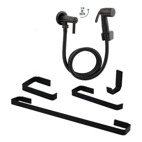 Kit De Banheiro Preto Com Ducha Higiênica - Porta Toalhas