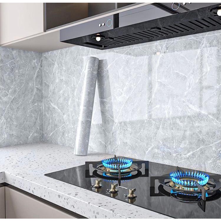 Papel De Parede Autoadesivo Para Cozinha Mármore Lavável Resistente a Agua Óleo Fogo Alta Temperatura