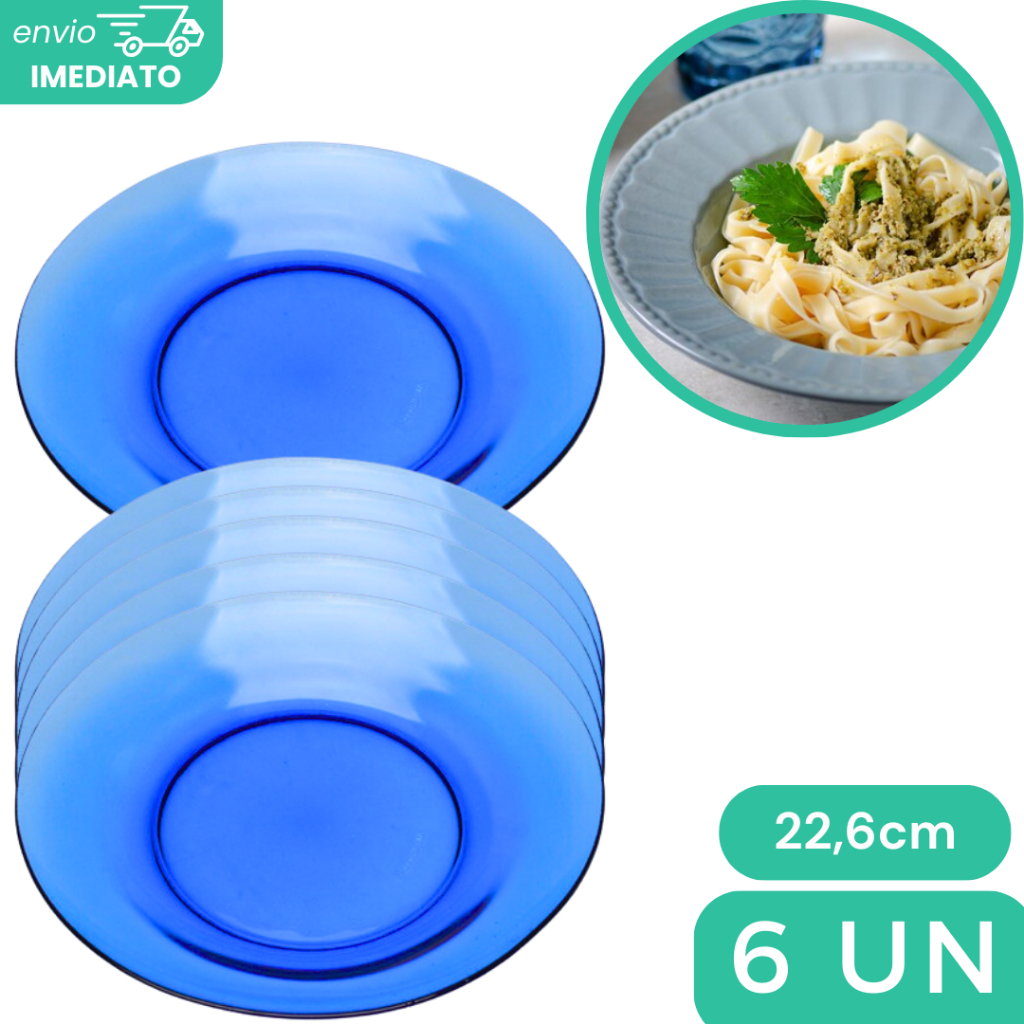 Jogo de Prato Azul VIDRO 6 PEÇAS Alta Qualidade Mesa Cozinha Temperado