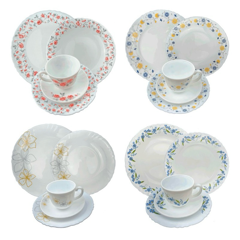 Aparelho de jantar e chá 20 peças vidro redondo decorado florido jogo de louças prato fundo raso sobremesa xícara pires