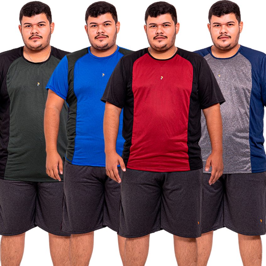 Kit 4 Camiseta Plus Size Academia Dry Fit Anti Suor Malhação Malha Fria Homem G1 G2 G3 Promoção