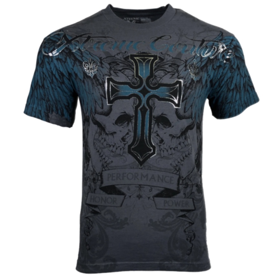 COUTURE by XTREME AFFLICTION Camiseta Masculina CARNIVORE Skulls Cross Biker S-5XL