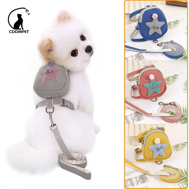 Trela De Arreios Coleira de Peitoral Para Cachorro Cães Com Bolsa Mochila Pet Multifuncional Pequenos E Médios Cão Colete Peito Coleiro