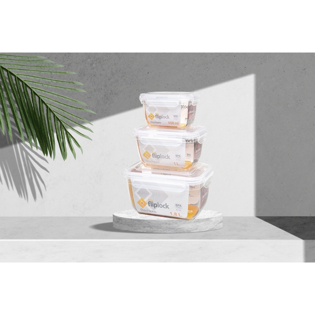 KIT 3 Pote Marmita Fitness Tampa Com Trava Hermético Ou Quadrado Fliplock Plástico Transparente Rischioto