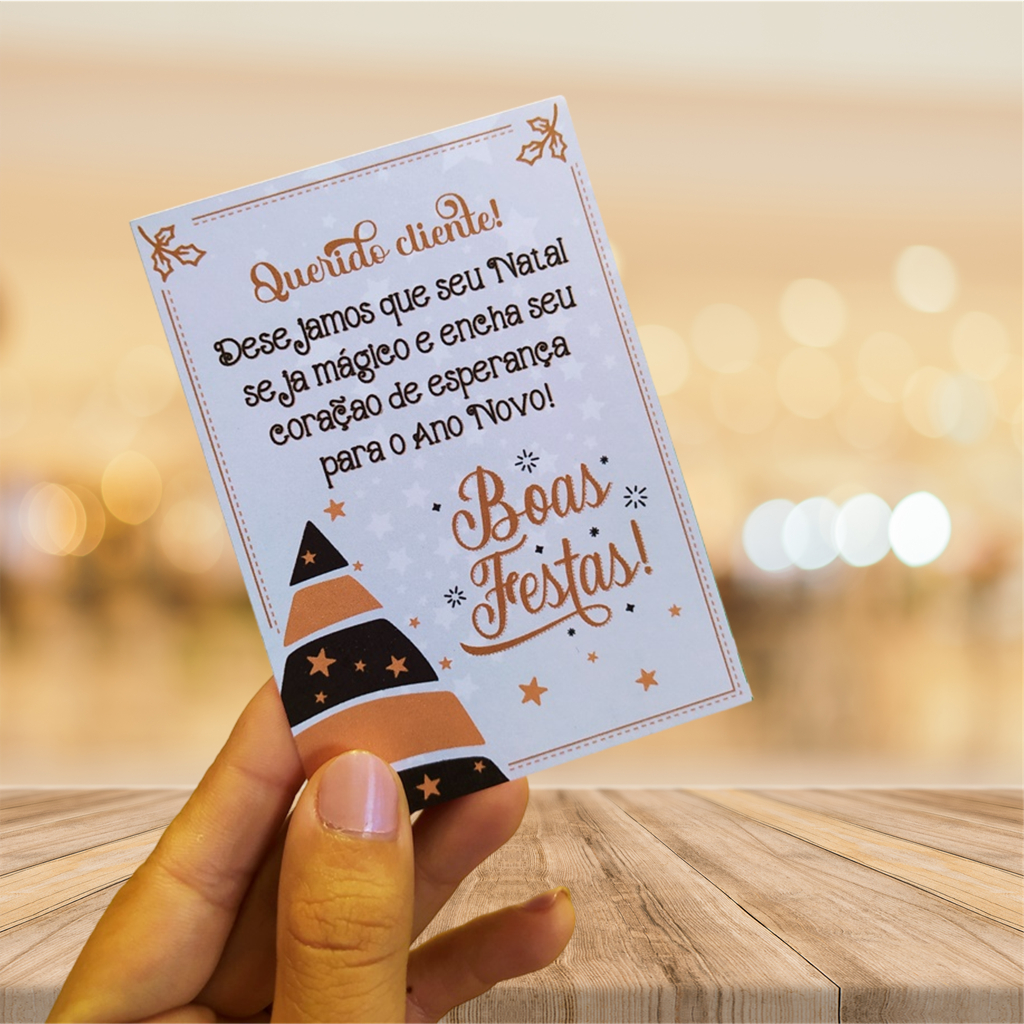 Cartão de Ano Novo para Lembrança ou Mimo ao Clientes (Frases) 7x10cm | Pacote com 50 Unidades