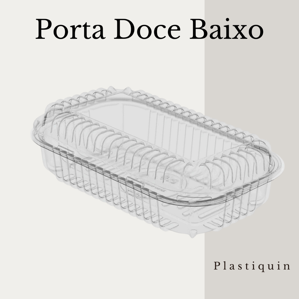 Embalagem Retangular Porta Doce Baixo, para Bolo Torta Rocambole com Tampa Baixa 50 100 e 150 Unidades PDBPET - 08