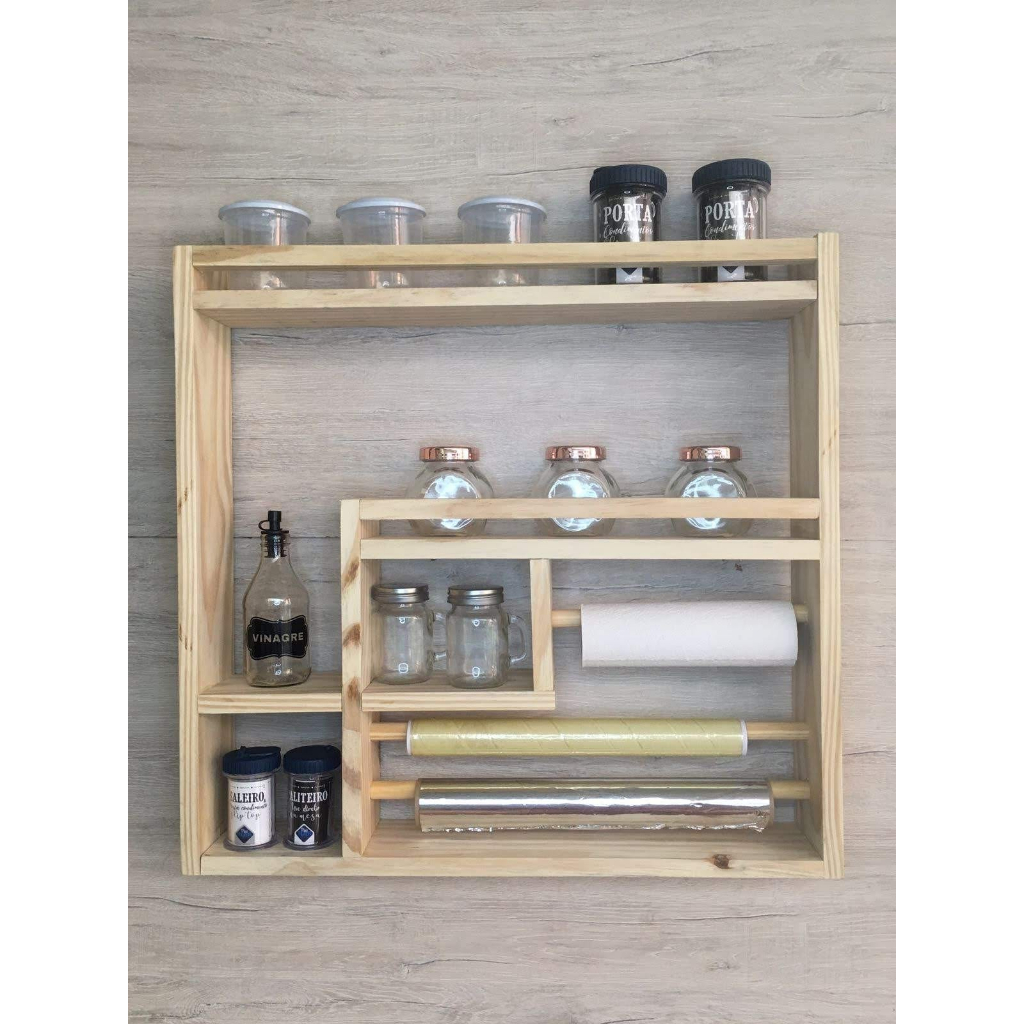 Suporte porta tempero cozinha organizador condimentos grande prateleira parede madeira