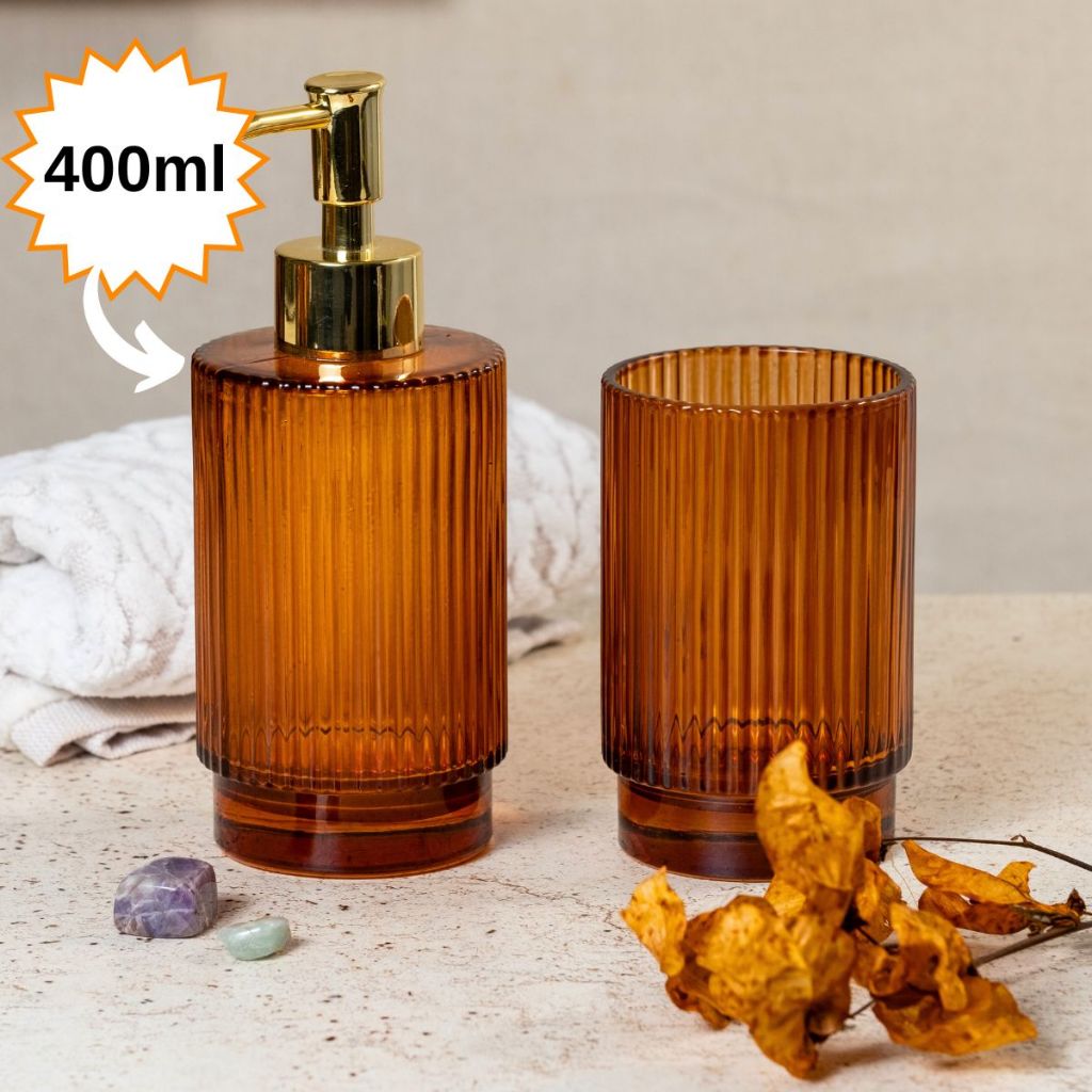 Kit Lavabo Banheiro em Vidro 2 Peças Porta Sabonete Liquido Copo
