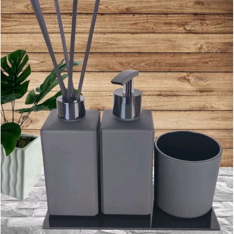 Kit Lavabo 4 Peças/ Banheiro Copo Porta Sabonete Líquido e Aromatizador De Varetas Preto Fosco