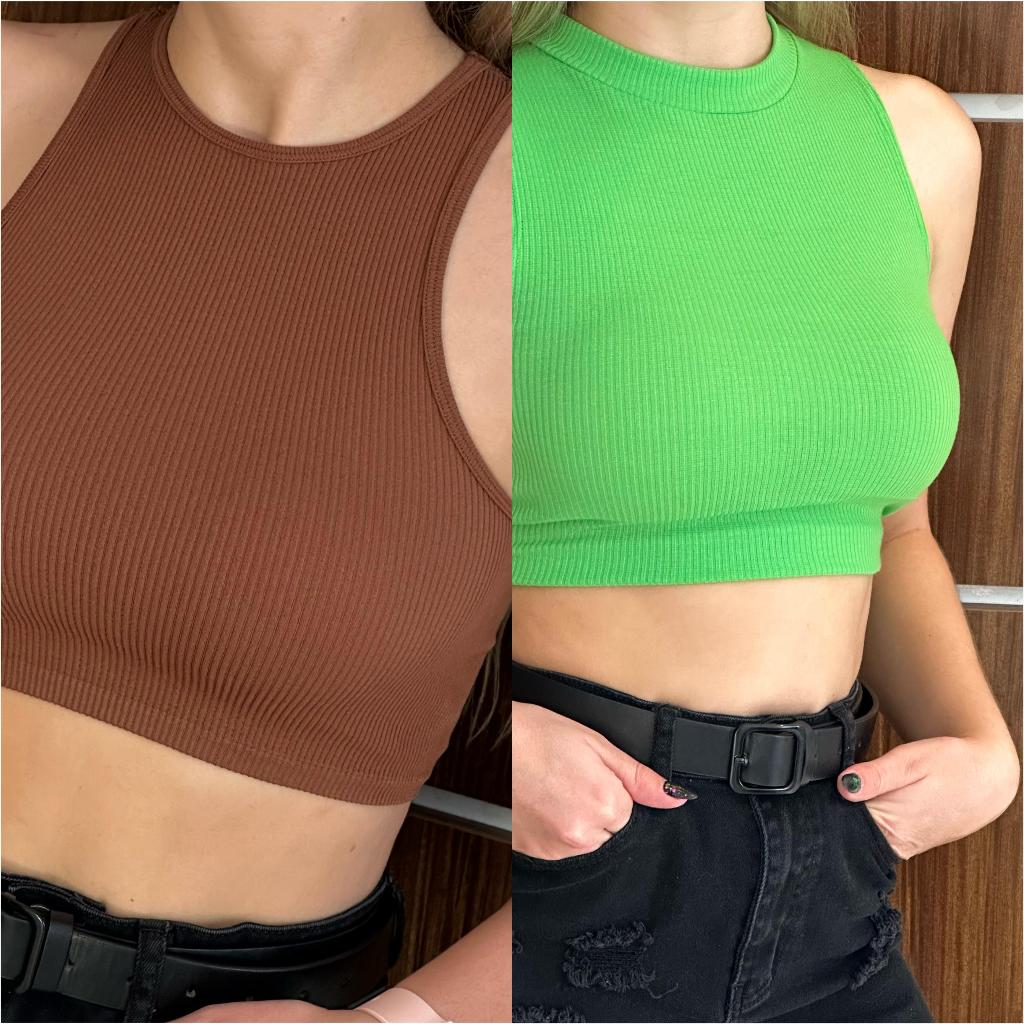 Kit 2 Cropped Top Feminino Canelado Alcinha Verão Blusa Feminina Básica