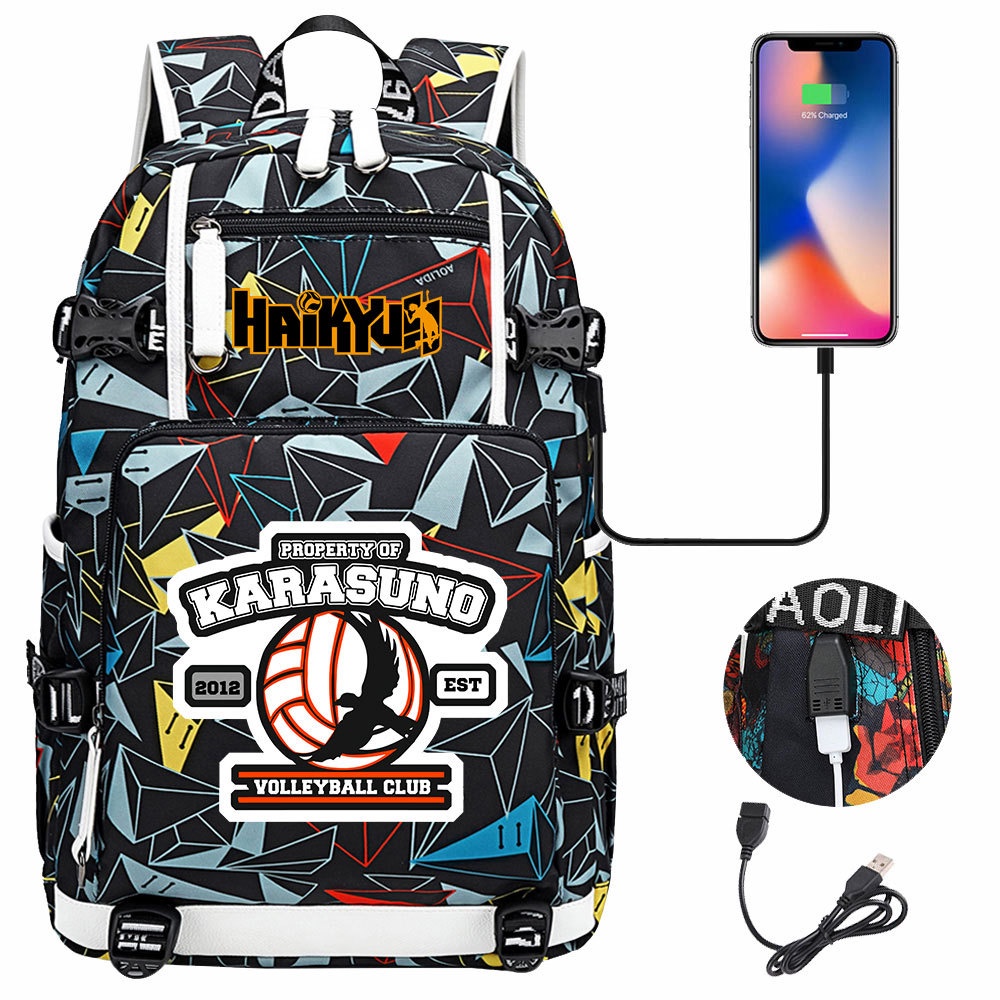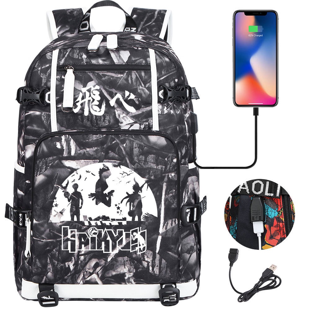 Mochila de ombro duplo de menino de vôlei de impressão USB de estudante adolescente para homens e mulheres de lazer de viagem de grande capacidade