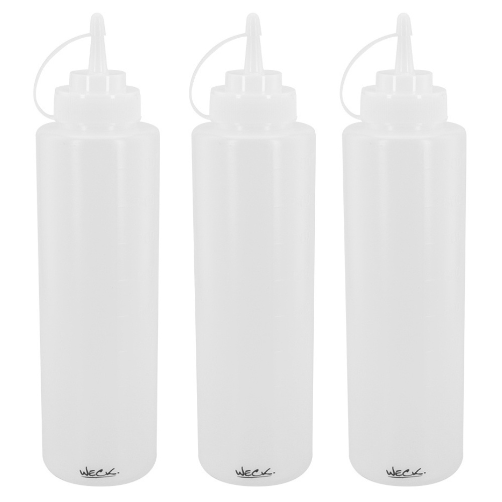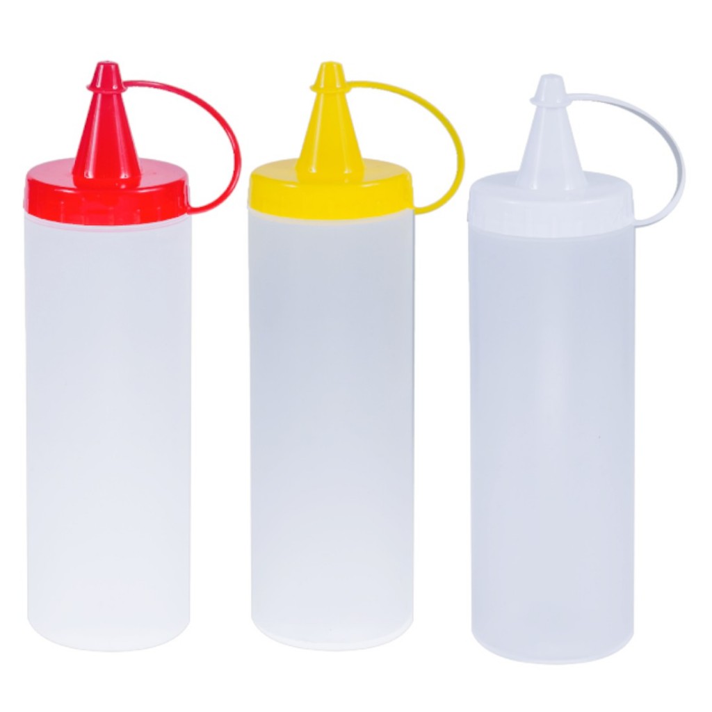 Kit Bisnaga Plástica 3 Peças para Molho Flexível Profissional 1000ml Tempero Ketchup Mostarda Maionese e Pimenta
