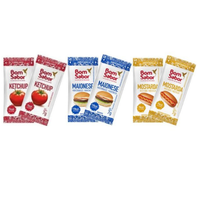 Kit Sache Ketchup + Mostarda + Maionese 7gr Bom Sabor - 10, 20, 30, ou 50 unidades de cada
