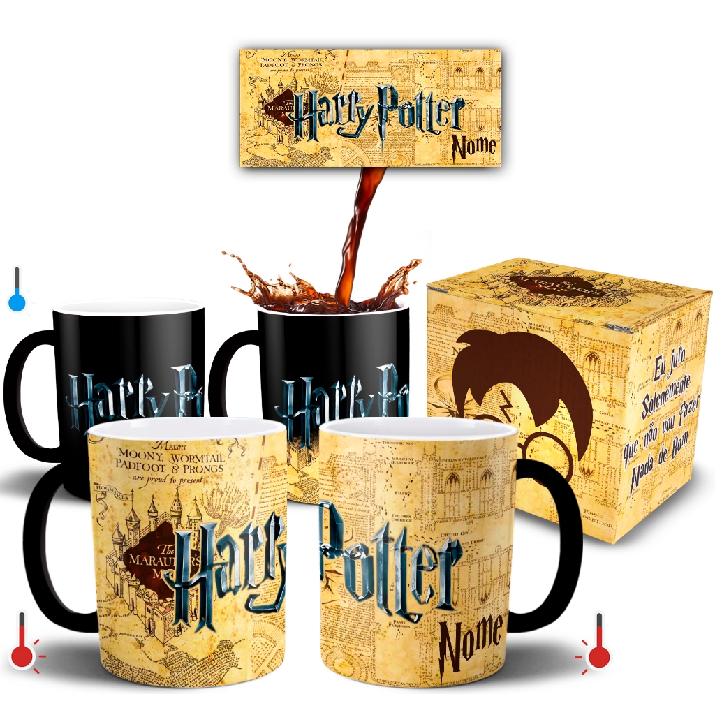 Caneca Mágica Harry Potter Mapa do Maroto + Caixinha com Nome Personalizado