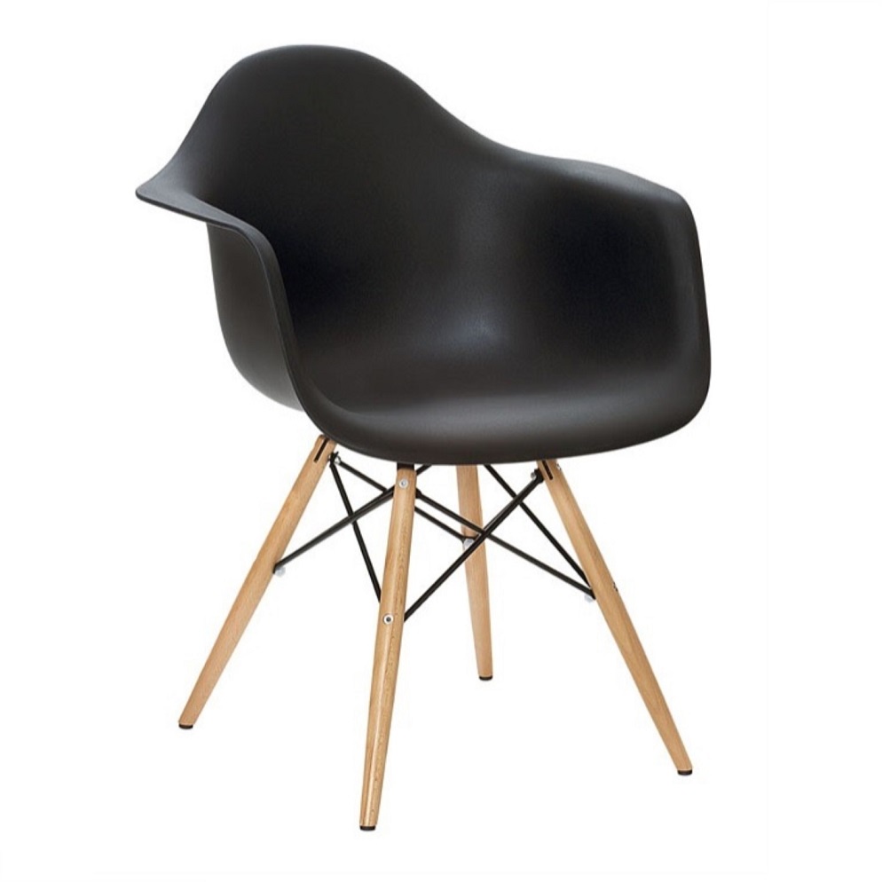 Cadeira Quarto Escritório Sala Charles Design Eames com Braços Eiffel Wood - Preta