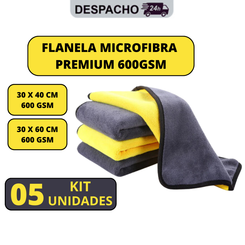 Kit 05 Pano Flanela Microfibra Automotiva 600GSM Premium Para Lavagem polimento de Carro