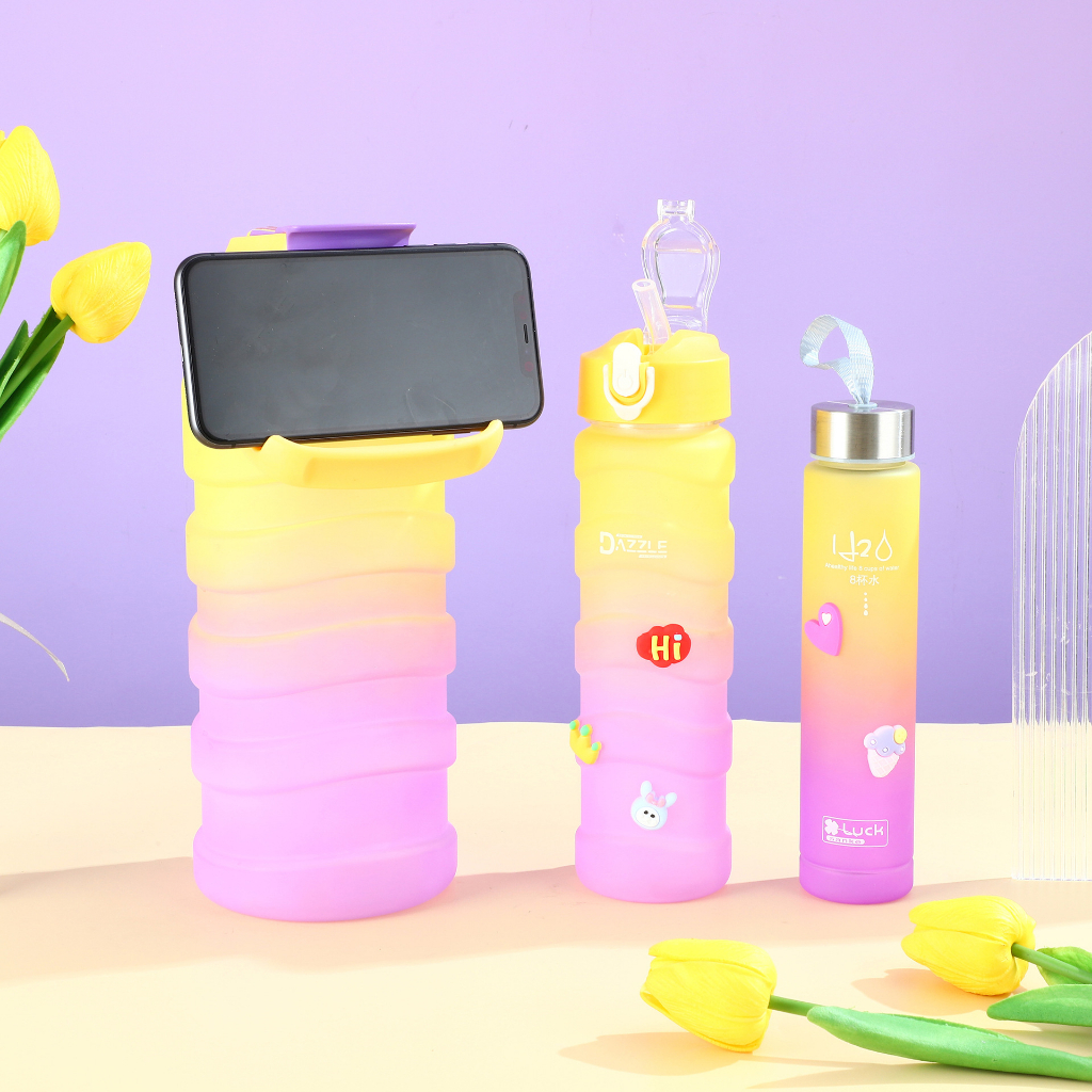 Kit 3 Garrafa Agua Squeeze Galão Com Adesivos com suporte para celular