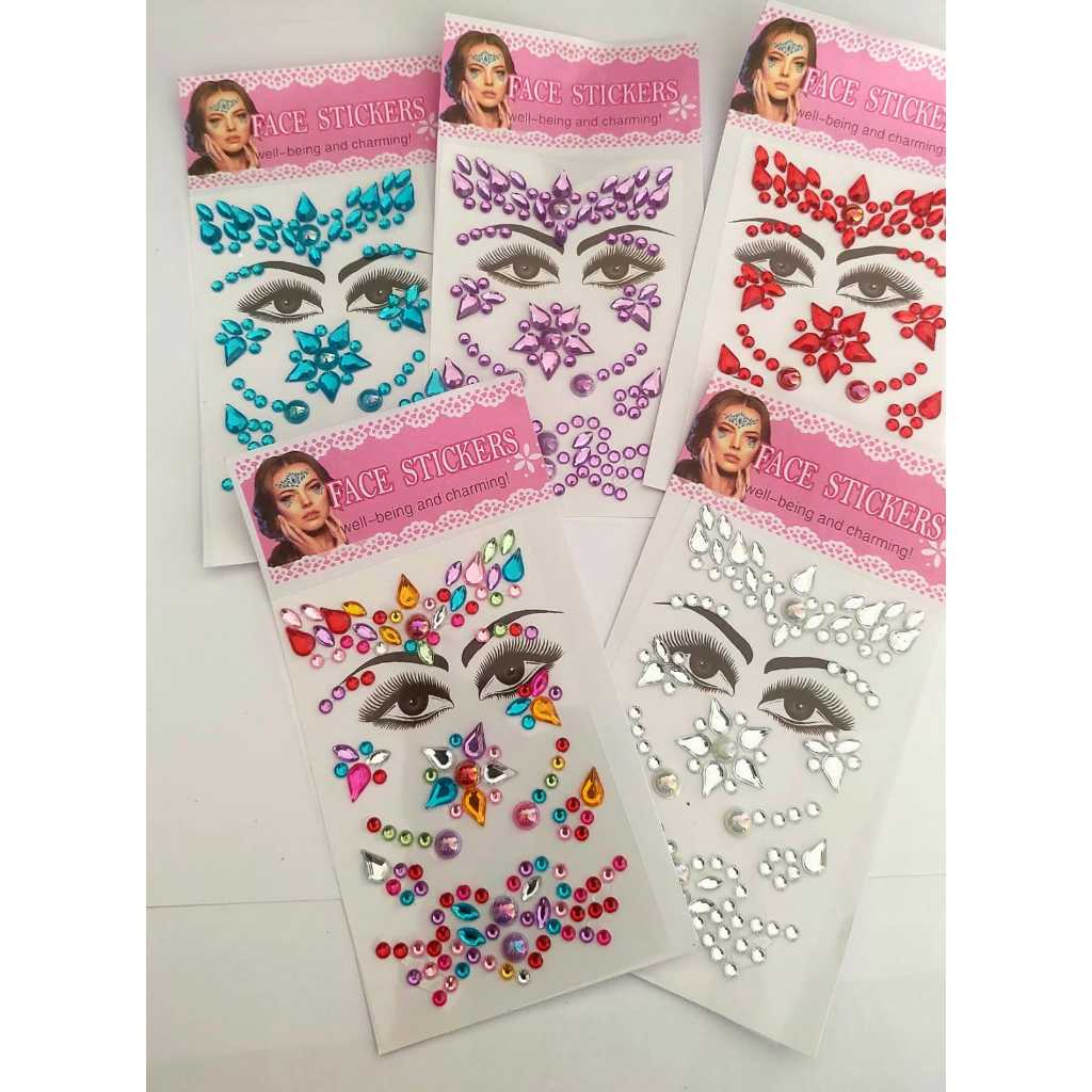 Adesivos Para Rosto Carnaval Maquiagem Strass Pedrarias Festas Kit Com 03 Unidades