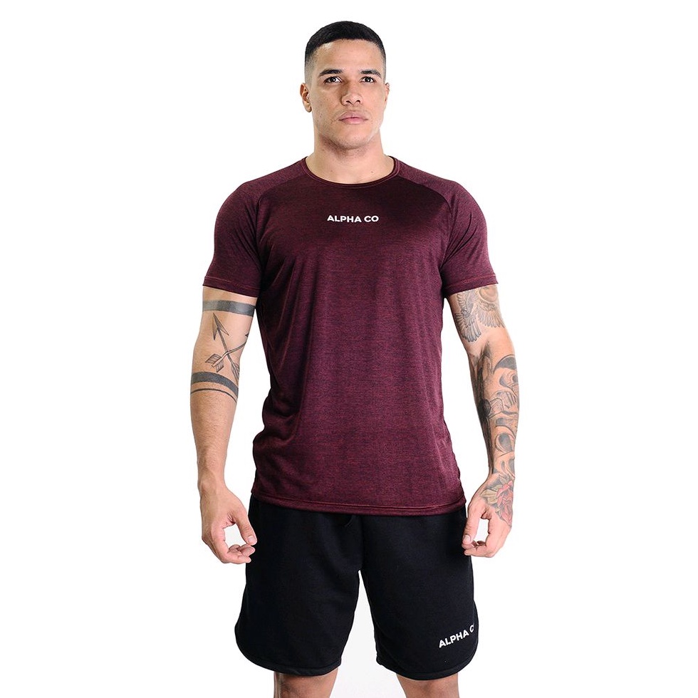 Camiseta Dry Fit Mescla Vinho Alpha Co de treino para academia, futebol e basquete