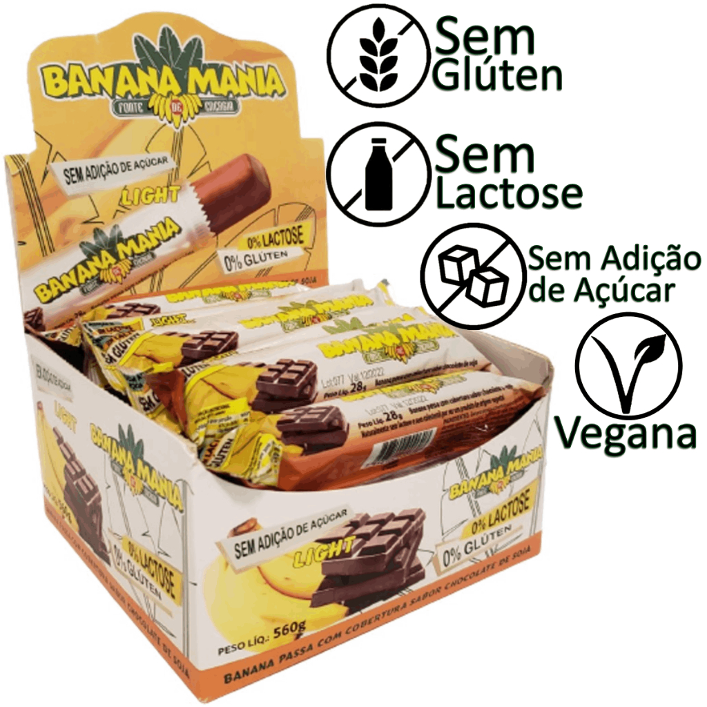 Bananinha com Chocolate Vegano Sem Lactose e Sem Glúten 20 Und de 28g - Doce de Banana Mania