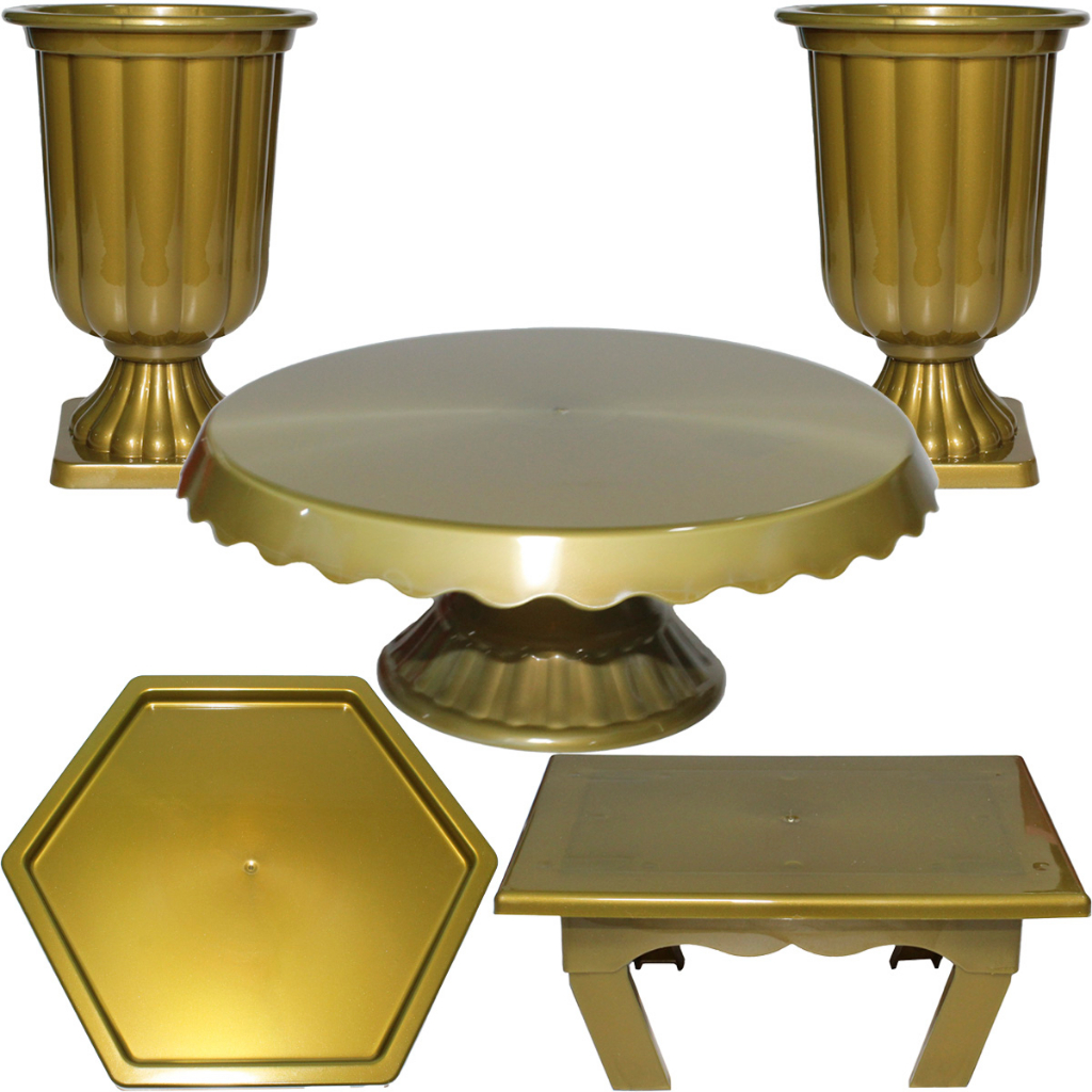 Kit Festa 5 Peças Boleira Slim Bandeja Sextavada Mesinha Doces e 2 Vasos 18,5cm Altura