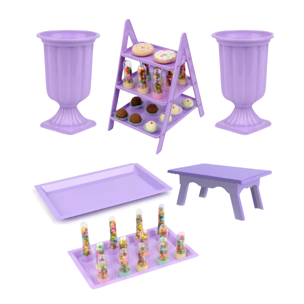 Kit Decoração De Festa 2 Mini Suporte De Doces + 1 Boleira 20cm + 1 Mesinha + 1 Bandeja Suporte Doce