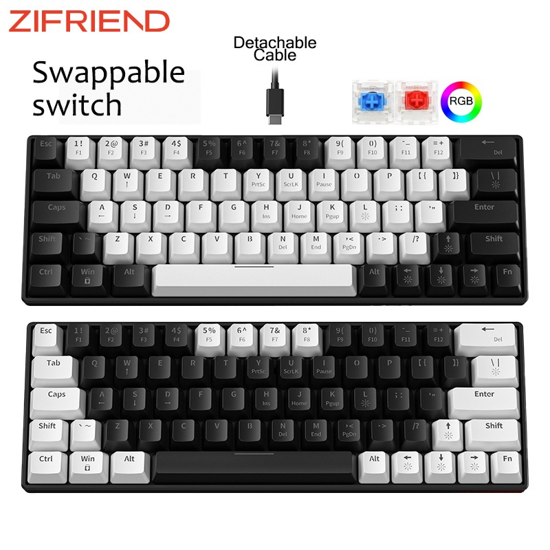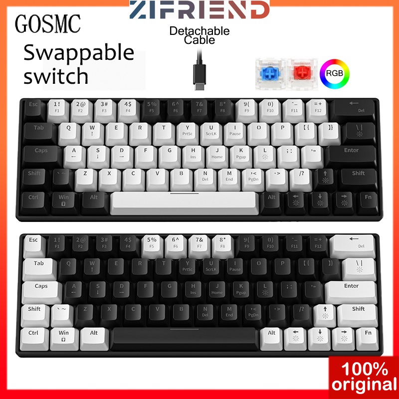 RGB Teclado Mecânico Para Jogos Com Fio USB Mini Interruptor Vermelho 63 Chave Gamer Computador PC Laptop Cabo Destacável PK KA6406 META61