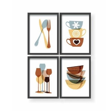 Kit Quadros Decorativos Mosaico 3 Peças Trio Rústico Cozinha Minimalista Master Cheff Presente Modular Arte Abstrato Xícaras Taça Cantinho do Café