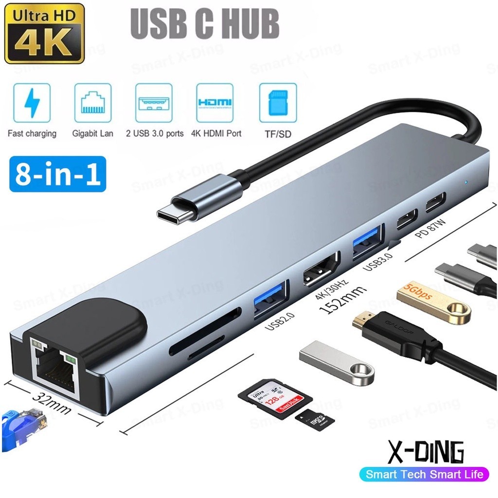 Estação De Ancoragem 8 Em 1 USB C Hub , Adaptador Com HDMI 4K , 3.0 & 2.0 , Leitor TF/SD , Tipo , 4K PD , RJ45 , Ethernet , Entrega De Energia De 100W Compatível Superfície , Deck De Vapor Ou